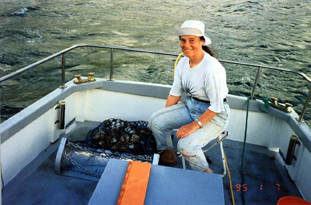 Janet Davidson on the aft deck of MV Kaselehlia