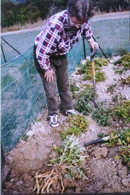 pointing downwards in the soil.